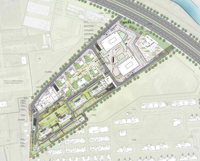 这7栋低层应该不是住宅。因为从之前的彩平图来看,4栋高层和北侧的低层建筑,地面铺装有明显不同。在综合技术经济指标中,显示还有“花园办公”,大概率说的就是这几栋商墅。另外,地面上还有十几个停车位,非人车分流。