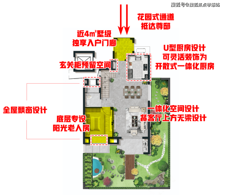 第一、不需要经过门厅及电梯厅的独立入户方式,做到独门独院的感觉,尊享感和仪式感拉满。