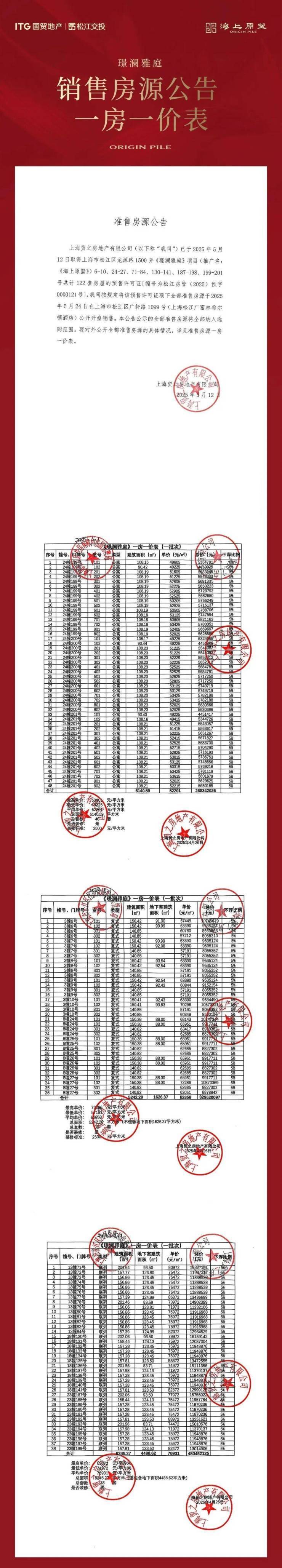 松江广富林墅居标杆「国贸海上原墅」四批次认购,建面约121-205㎡公寓、叠加、联排加推,均价54667元/㎡。