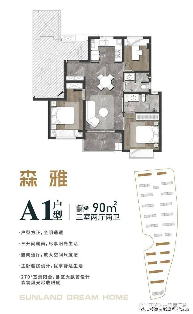 森兰·航荟名庭预约热线☎:400-8080-420✅✅【预约☎】要知道市场上大多数项目,建面约90㎡左右的户型都基本做2房设计,3房一般都要100㎡左右。「森兰·航荟名庭」建筑面积约90㎡A1户型不仅实现了3房功能性一步到位,还有2卫配置!降低当下置业成本的同时,给购房者未来在二手市场也能抢占先机!户型方面,该户型是南向大面宽设计,足以容纳主次卧+客厅三开间朝南,采光性能优异!客餐厅一体化设计,减少过道面积浪费,视野也更开阔。U字型厨房设计,更符合人们料理动线,利用率更高。客厅则是竖向通厅,方正明亮,可容纳全家的欢聚。