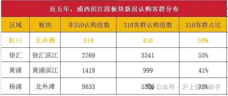 我们盘了一下近五年浦西各滨江段板块的认购客群数据。