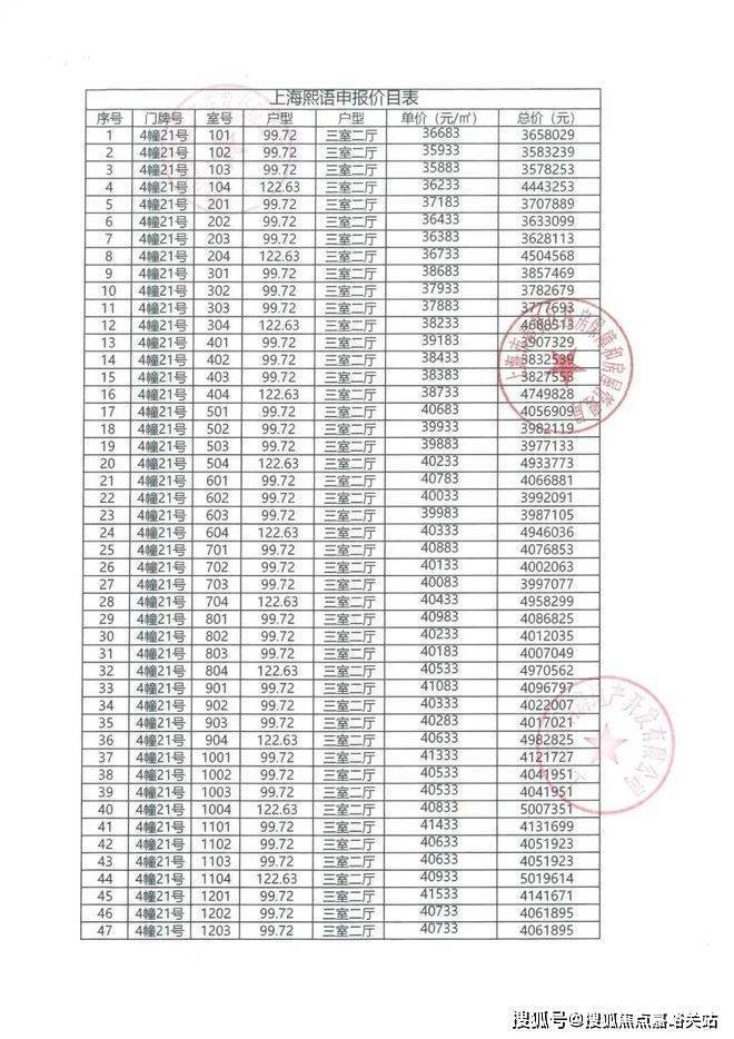 上期一房一价如下: