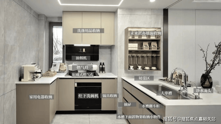 厨房:配备博世( BOSCH )烟机、灶具、洗碗机等六件套,这套配置甚至超越了市中心部分单价12万+豪宅的标准。操作动线流畅,预留充足的收纳空间。