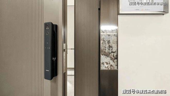 还未进入室内,就配备了带有猫眼的四合一智能门锁,以及定制的门牌号与logo的入户门,彰显着主人的品味与尊贵。