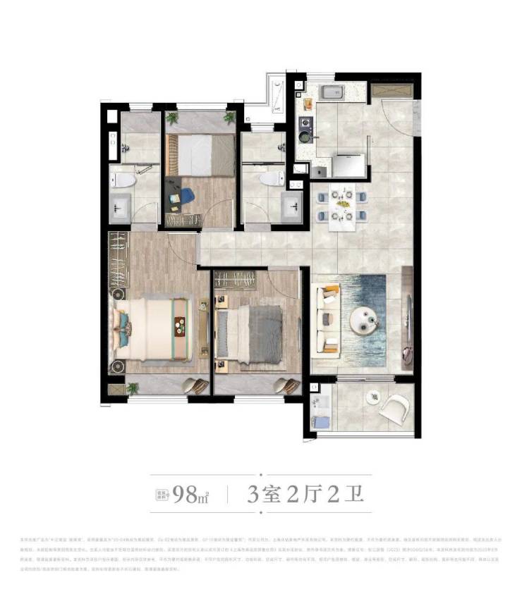 【尚湾林语】项目的主力户型,建面约89-98㎡高层来说。面积段看似与市面上的许多产品差别不大,但要知道该项目在设计上可是煞费苦心。每一个空间的布局都是以居住舒适度为主,从而在有限的空间里尽可能的满足从三口之家到三代同堂或者二胎家庭的全龄段需求!