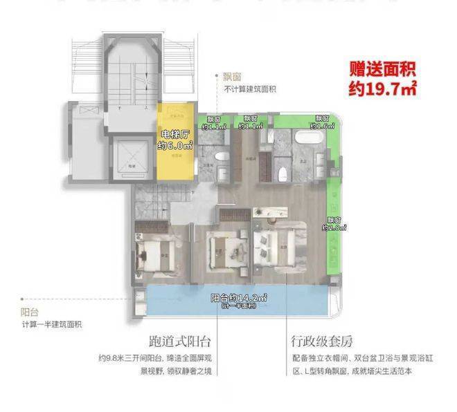 能从建面约100-140㎡→实际使用面积近约200㎡超高附赠产品