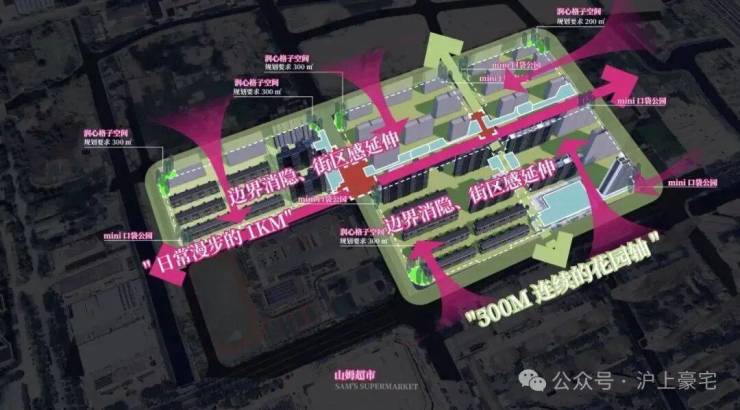 这些丰富的生活场景,则由两条景观轴线串联:一条是约300米的连续花园轴;一条是约600米的日常漫步街区。与此同时,项目在街角处还打造了多个口袋公园!
