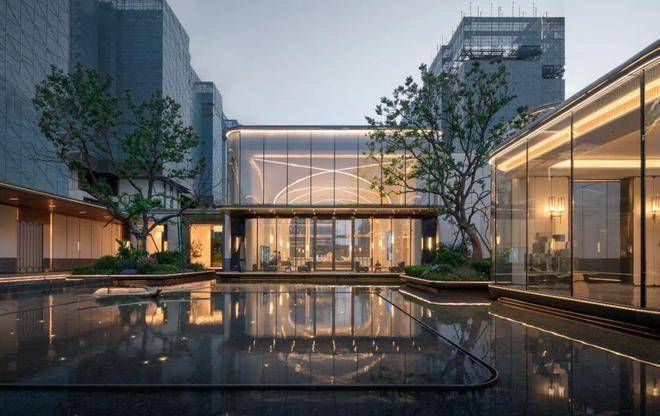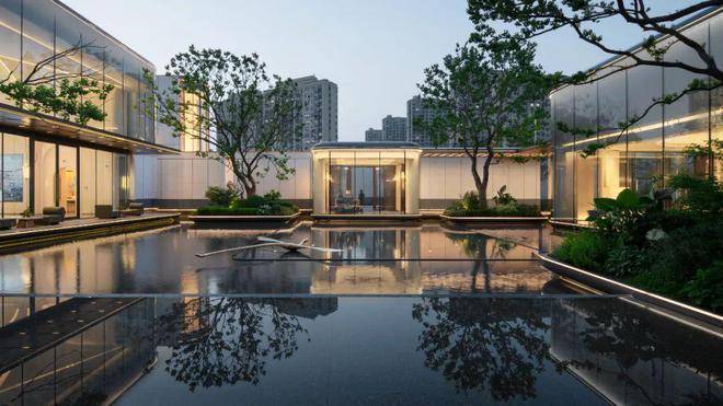 一方雅静的现代逸境,也许才是属于现代人的诗和远方。步入第二重水院,感官艺术与空间布局相融合,由内而外打造了海派生活场景。漂浮盒子与大面积的镜面水景交相呼应,打破了传统建筑与自然环境的界限,创造了一片闹中取静的城市绿洲。