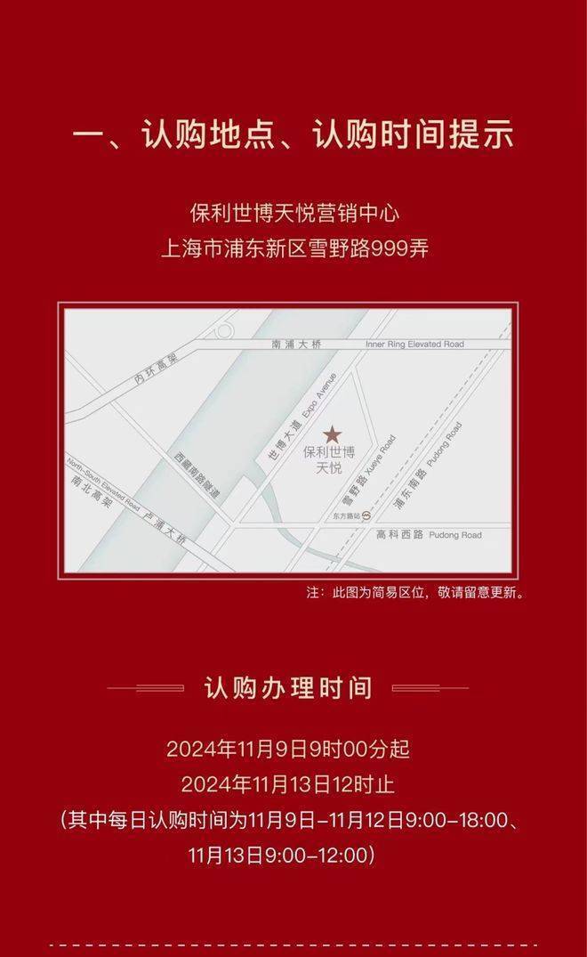 1、项目推广名为“保利·世博天悦”,地名核准名/备案名为“玖丽璟庭”,开发公司为:“上海华辕实业有限公司”;预售证号:浦东新区房管(2024)预字0000398号;2、本资料为要约邀请,不作为要约或承诺;3、相关宣传内容不排除因政府相关规划、规定及出卖人分期规划、未能控制等原因而发生变化;4、买卖双方的权利义务以双方签订的商品房买卖合同及其补充协议、附件等书面文件为准;5、本宣传材料所涉及户型仅供示意参考,具体以政府部门最终审定的图纸和销售合同为准,本资料所涉及面积皆为预估面积,相同户型单位因楼栋、楼层、单元等差异,局部结构、形式、面积、装饰等可能有所不同,且预估面积与实际面积可能存在差异,面积最终以房管局测绘为准。户型图中装修、家具、电器等设备仅为示意,不属于交付内容和交付标准,实际部品的选型和房间空间尺寸根据户型情况,略有差异,以现场实际为准;6、本宣传资料中涉及的价格、折扣、付款方式等信息,因销售时间、户型楼栋、楼层、方位等不同有所差异,以双方签订的商品房买卖合同及其补充协议、附件等书面文件为准;7、本资料所发布的内容为2024年12月的信息,敬请留意最新资料。