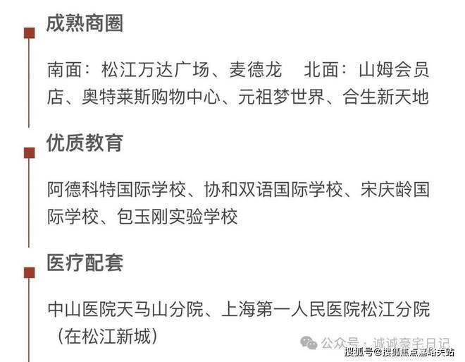 教育:周边有青浦协和双语学校、松江第二实验小学、宋庆龄国际学校、包玉刚学校、上海赫德双语学校等。