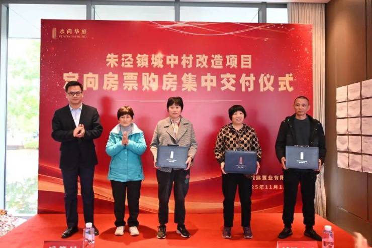 11月12日,上海金山区朱泾镇“华庭启程 幸福归家”城中村改造项目定向房票安置集中交付仪式在水尚华庭项目售楼处顺利举办。金山区房管局、朱泾镇政府及城投控股相关代表出席仪式,与首批定向房票安置居民代表共同见证房票与房屋钥匙的正式交付,这标志着朱泾镇70户逾期在外过渡居民的安居愿景迈出实质性一步,也意味着城投控股在城市更新与住房保障领域的实践再结硕果。