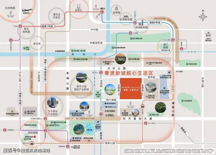 一、滨江南,近市区。金汇离人民广场直线距离仅约28km,对于工作在徐汇、闵行,或者浦东中环附近的人群,通勤便捷,自驾可通过浦星公路接入南北高架路。