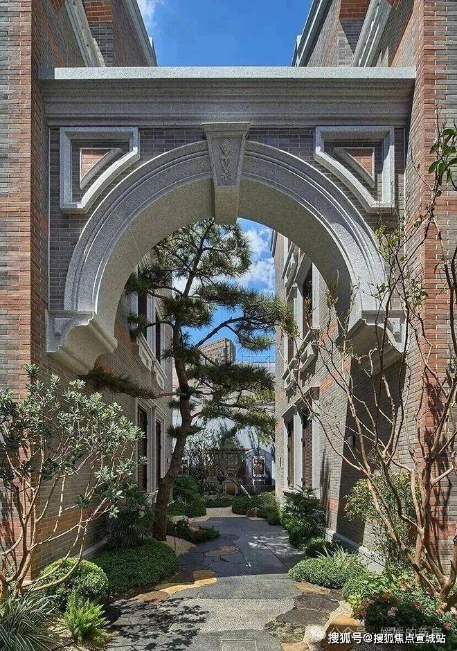 拱形门坊及雕花复刻湖州会馆、菱形山花元素还原老建筑印记、巷道风貌铺装叠加红砖清水墙赓续衡复风貌,演绎百年摩登风尚。