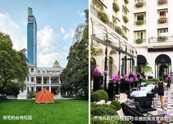 景观设计上,借鉴巴黎乔治五世四季酒店玻璃廊架设计灵感,与荣宅中经典而雅致小花园设计,营造古典与现代,繁华与静谧共融的花园之境。
