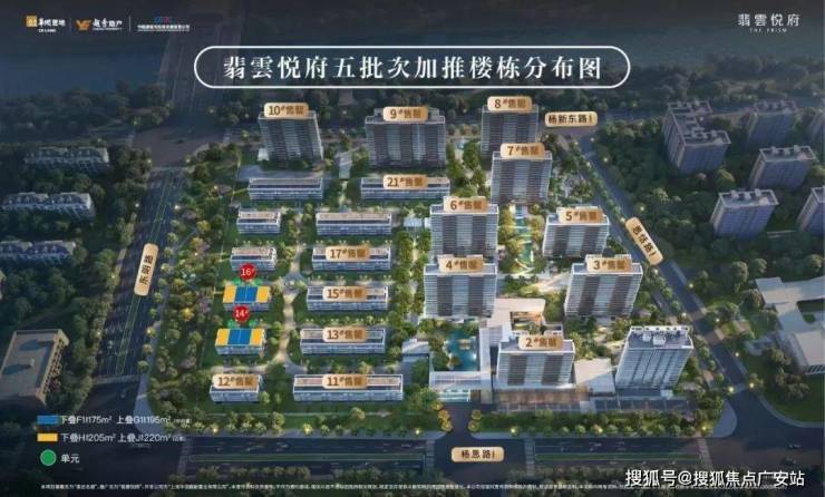 建筑规划:由10栋13-19层高层与12栋4层叠加别墅组成,建筑限高60米
