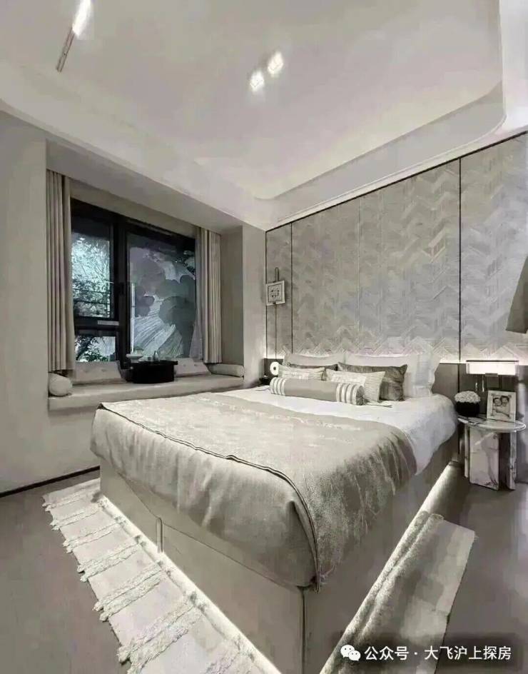 尤其是主卧大套房安排上独立衣帽间+独卫,配上270度的转角飘窗,一扇窗就是一幅流动的四季自然画。