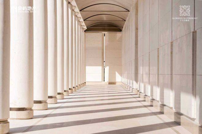 材质是这部“艺术导览”的沉默语言。入口处50根廊柱构成的回廊,全部采用源自德国巴伐利亚的米黄奢石干挂。这种石材硬度极高,耐岁月腐蚀,其价值不在炫目的花纹,而在随时间愈发温润的质感。设计手法上,则巧妙嫁接了意大利建筑师卡洛·斯卡帕的“叠级”技艺——一种通过材料层叠塑造复杂空间感的解构主义笔法。在这里,它被用于窗套、水景和多处细节,让建筑在严谨的对称中,流动着精妙的视觉韵律。