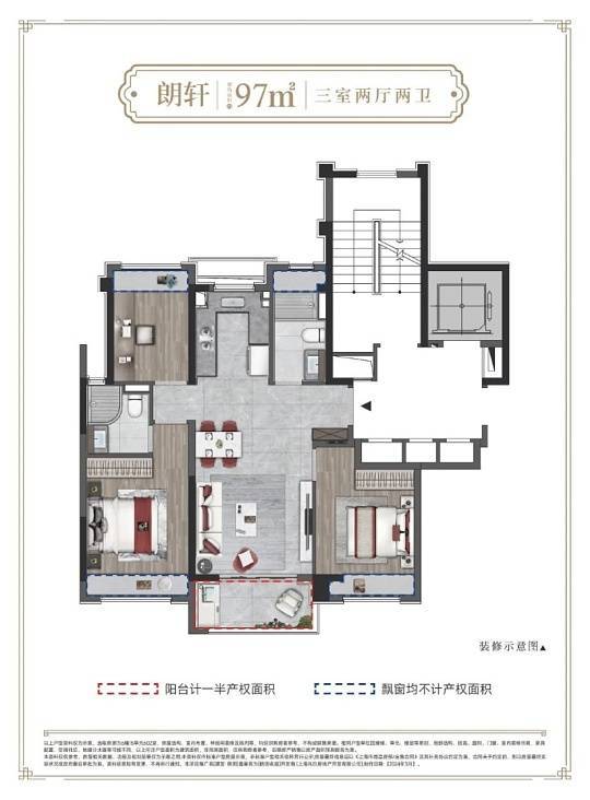 建发·朗玥主推建面约97-203㎡的3-4房,均价约3.08万-3.19万元/㎡,总价249万起。户型设计兼顾功能性与舒适度,多为经典飞机户型,三开间朝南,主卧套房设计,得房率达76%-78%。项目精装交付,配备中央空调、地暖、新风系统等高端设备,部分户型采用宝格丽风格金属屏风,地上地下双精装大堂尽显品质。