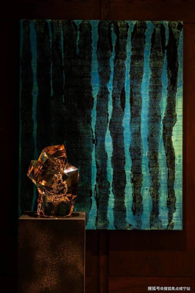 还有专门的艺廊,布置水景,空间灵动,再挂上雕塑家、艺术家的作品,整个空间逼格满满。