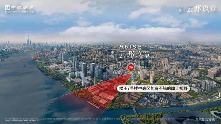 项目南区距离江面仅约500米,楼王7号楼的高区还能有不错的瞰江视野,这也是一大惊喜!