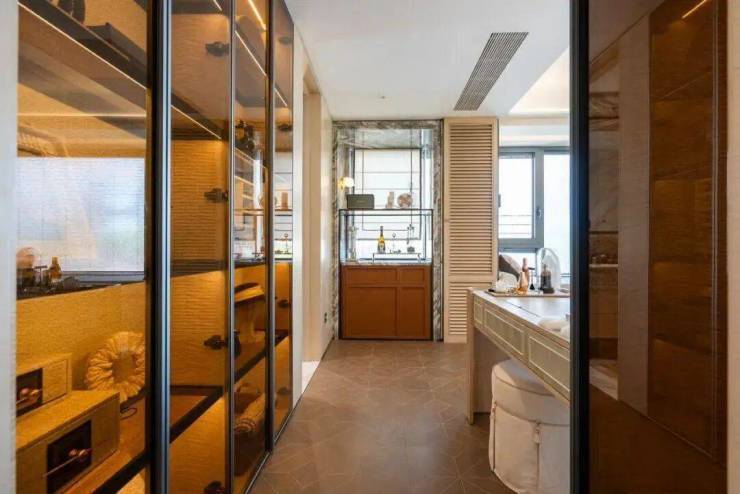 除了原来的标准,还大量选用了鱼肚灰、安第斯雪景、水云沙、雅柏灰...等多种名贵奢石。比如,客厅的电视背景墙、地面、主卫、飘窗等区域选材都升级为奢石。另外,客厅沙发背景墙、卧室背景墙升级为精美皮革,木饰面升级为温润影木,室内的豪宅气质更胜往昔!