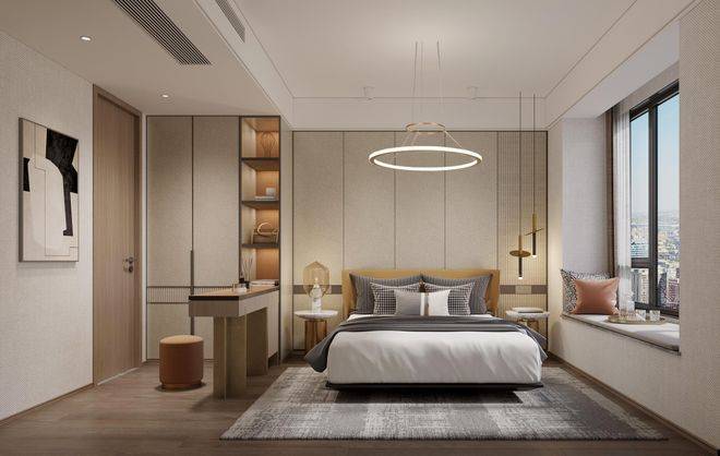 卧室的设计也特别贴心,主卧是套房设计,配备了独立卫生间和衣帽间,私密性特别好。主卧的空间很大,能放下一张大床、一个衣柜,还有多余的空间可以摆上一张沙发,平时可以在这里休息、看书,特别惬意;独立卫生间做了干湿分离,早上洗漱、晚上洗澡,都不用和家人抢卫生间,节省时间,也更方便、更私密。而且主卧带飘窗,坐在飘窗上就能晒晒太阳、看看风景,特别舒服。