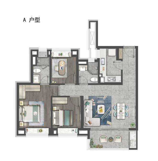 再说说改善族最爱的109㎡-129㎡三室两厅两卫户型,主打宽敞实用,兼顾舒适性和实用性,适合三口之家或者有老人一起住的家庭。比如119㎡的三室两厅两卫,户型方正,南北通透,客厅和两个卧室都能晒到太阳,采光通风特别好,家里显得特别明亮宽敞。