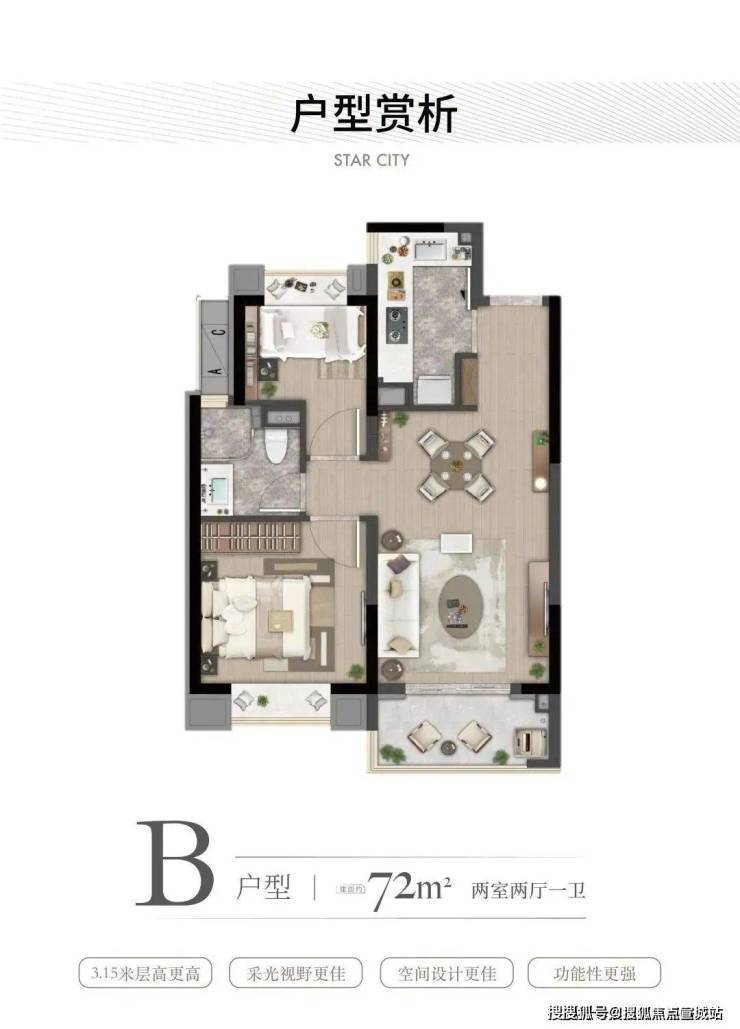 户型信息:主力户型为建面约 72-137㎡的 2-4 房。其中,72㎡两房全明设计,总价约 422 万起;88-98㎡三房三开间朝南,主卧套房设计,总价约 550 万起;120-137㎡四房四开间朝南,配 6.8 米阳台,总价约 756 万起。