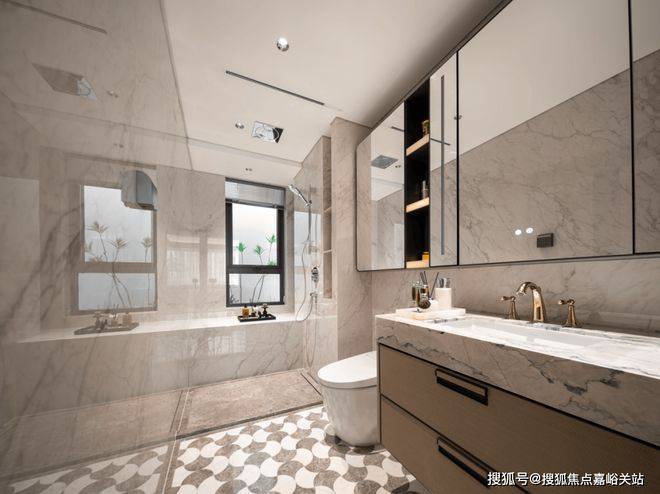 门庭延街的外立面,以精工定制弧形 米色石材 为主调,镶嵌典藏级 老虎玉大理石 ,点缀 古铜色现代海派艺术感灯器 ,整体呈现出百年海派的贵雅气质。