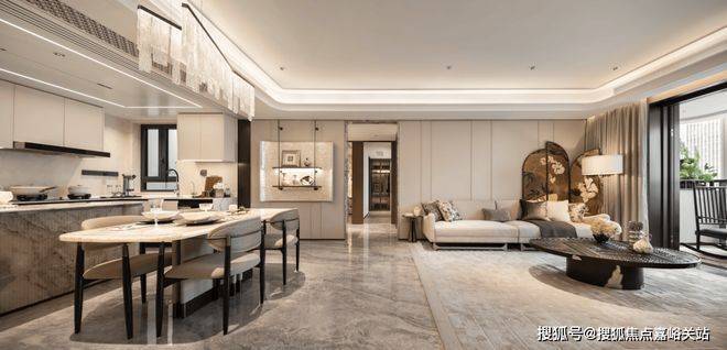 走进海上·清和玺的厨房, 墙面岩板通铺 ,视觉效果超棒。