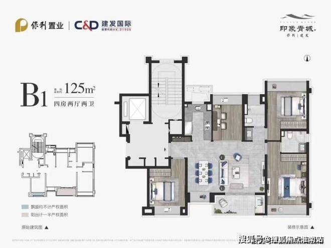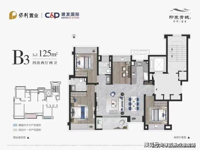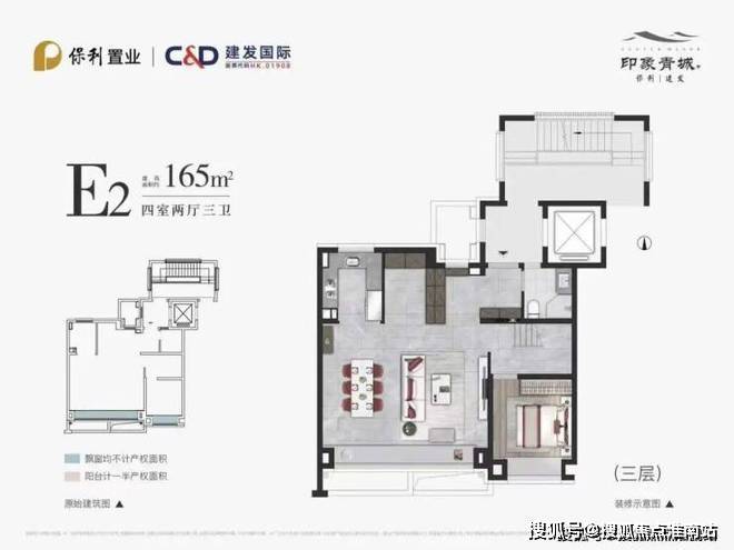 上叠建面约165㎡4房2厅3卫「保利建发·印象青城」