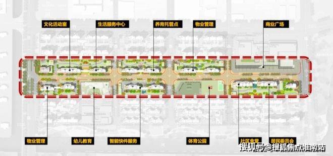 一轴:幼儿园、体育公园、快递驿站、文化活动空间等