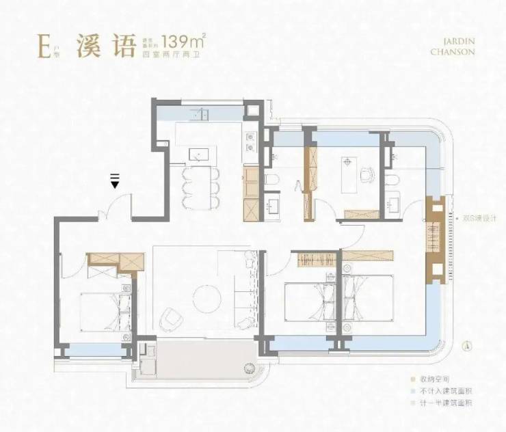约107㎡边户全屋设计了5个飘窗,而139㎡户型的飘窗总体线长约23m,还不算阳台。飘窗面积折合下来,就是约15平米的赠送面积,价值小100万!