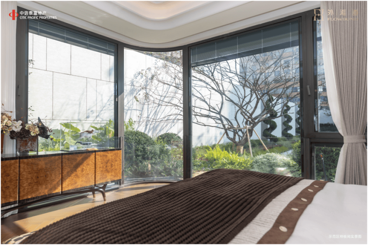 270度转角飘窗,以超越传统窗体的三面采光,构建出一座“光之容器”。比直线多一面的设计,让光影叙事随时间流转:晨光轻柔唤醒,午阳洒满角落,暮色勾勒轮廓。飘窗可坐可卧,将窗外天光云影转化为可休憩、可冥想的私属观景台。