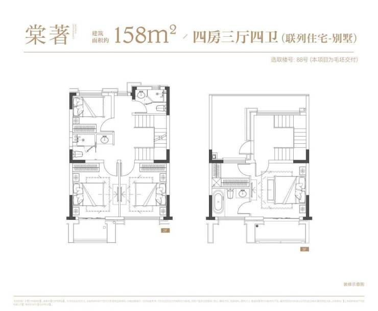 叠墅:叠墅一共四层,分为上/下叠,上叠建筑面积约139㎡,下叠建筑面积约142㎡。