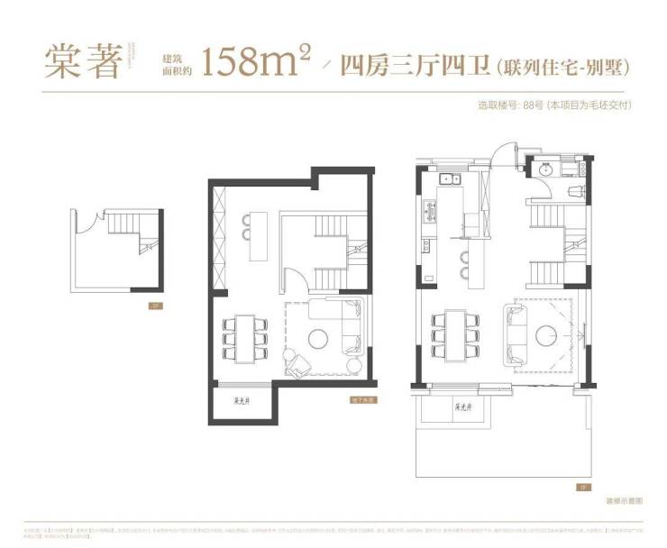 联排建面约158-165㎡,地上三层+超大面积地下空间,地下采光井+星空露台,有天有地!