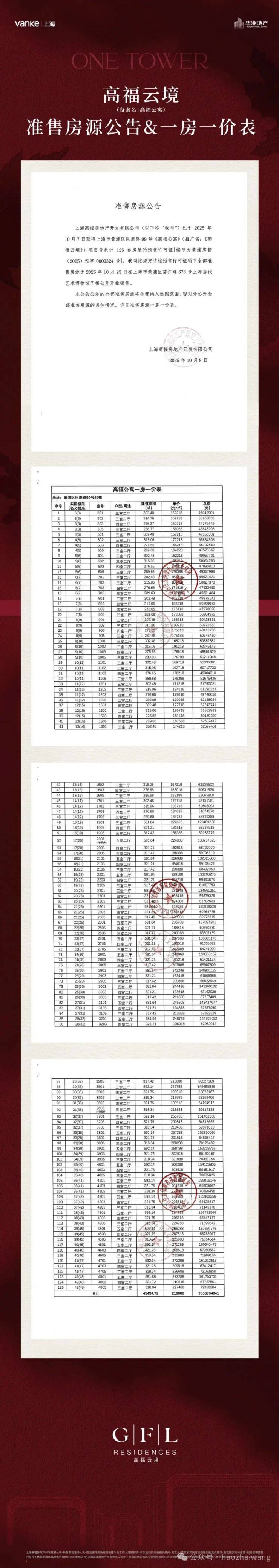 上海黄浦区新房丨顶豪丨明日认筹丨高福里一房一价表丨均价21万/平!289-591平,最贵1.6亿,认筹金760万