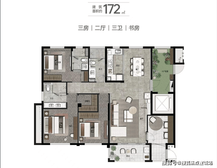 建面约172㎡4房2厅3卫▼