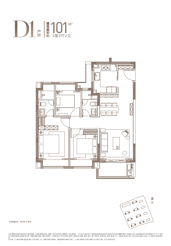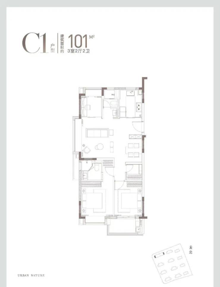 建面约100㎡三房样板间▼