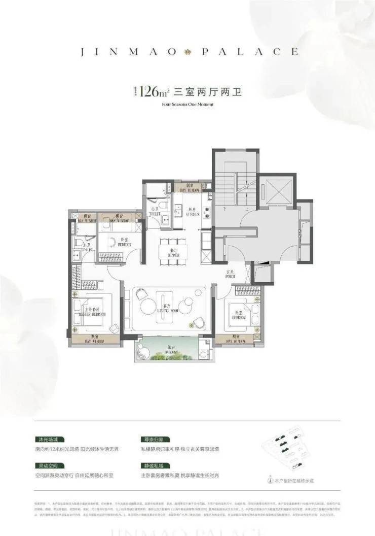 ● 建面约126㎡横厅3房:一步到位顶奢3房,全杨浦没有竞品。