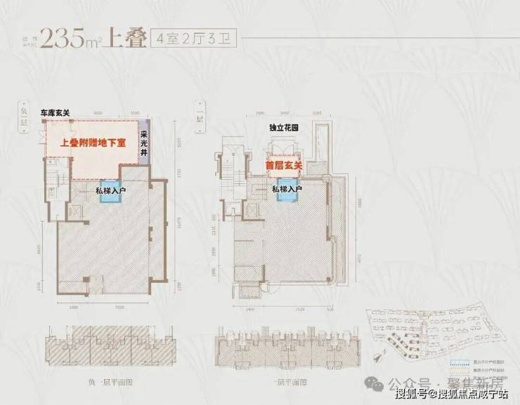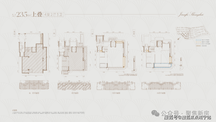 建面约235㎡上叠户型详细分析: