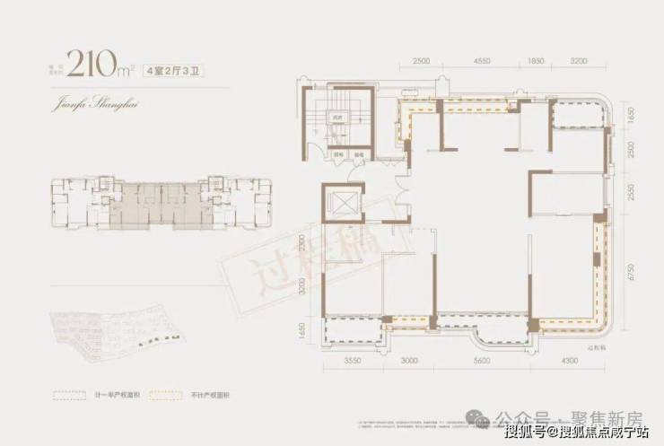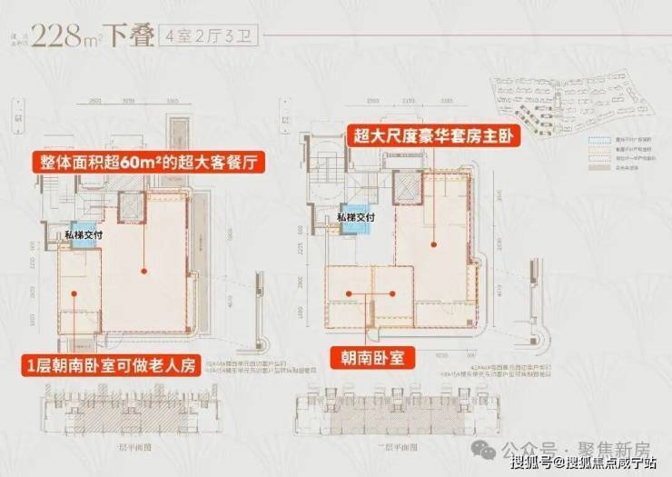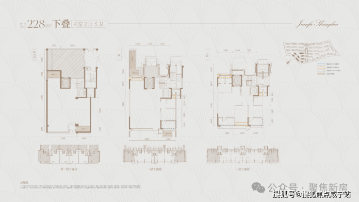 建面约228㎡下叠户型详细分析: