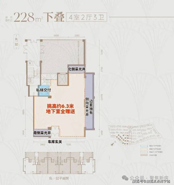 首先,上叠是北向私享入户花园,独门独户,室内私家电梯,尊崇感与私密性都有保障。而且上叠也有地下空间,下单层面积约55㎡,层高达约6.3米,完全做可以做双层使用。