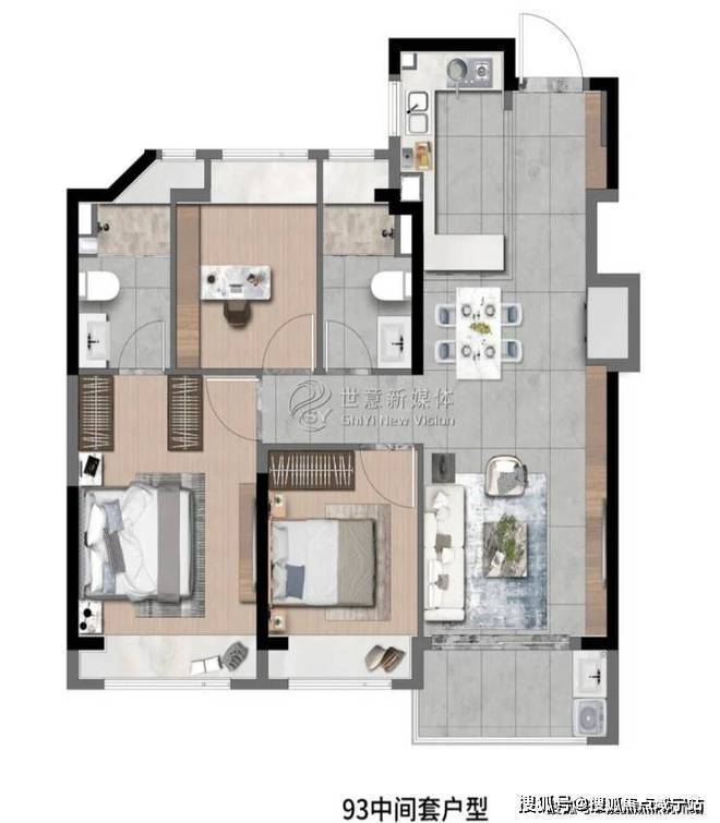 象屿深入考量空间与场景的运用,将生活中看得见与看不见的细节进行了细致打磨。玄关、阳台、厨房、卫浴均设置科学收纳空间,营造高品质生活体验的同时,更带给居者层建面约83㎡3房2厅1卫