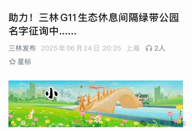 G11生态休息间隔绿带正在紧锣密鼓地建设中。近日,上海三林一则饱含生态期许的官方征集令正式发布——镶嵌于外环带上的“翡翠绿链G11生态休息间隔绿带公园,面向全社会为其四大功能区公开征名!