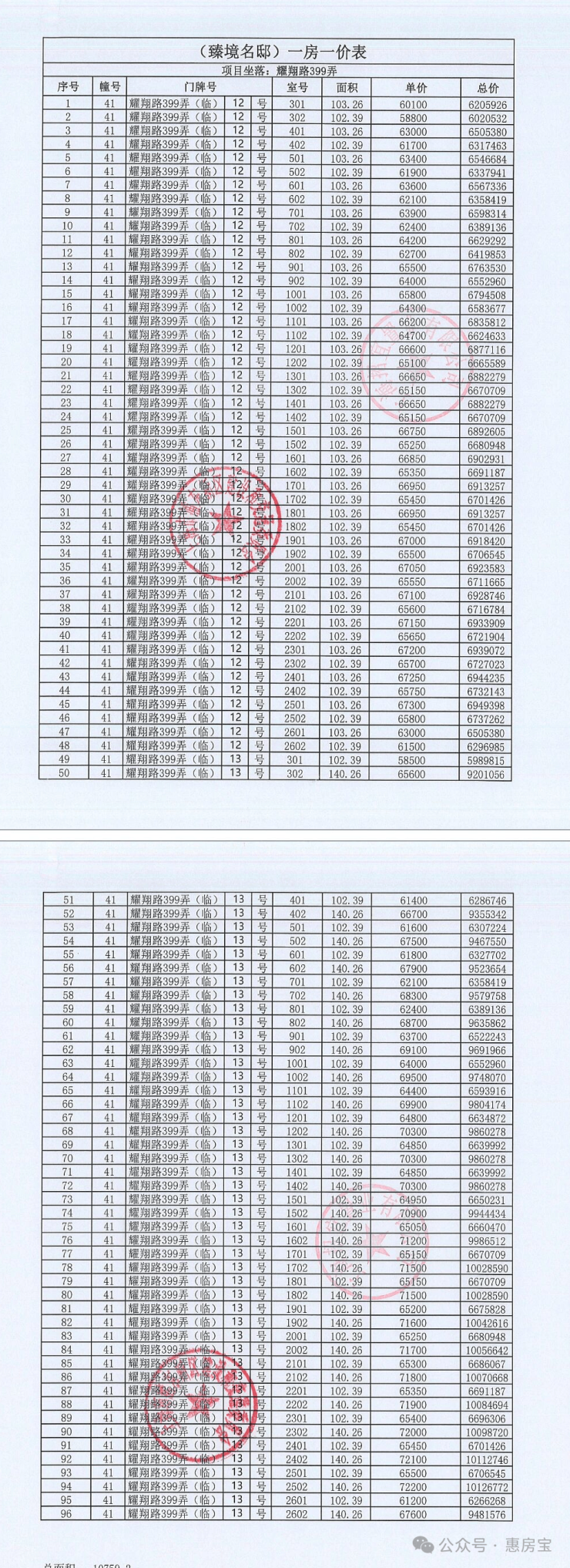 一房一价如下:
