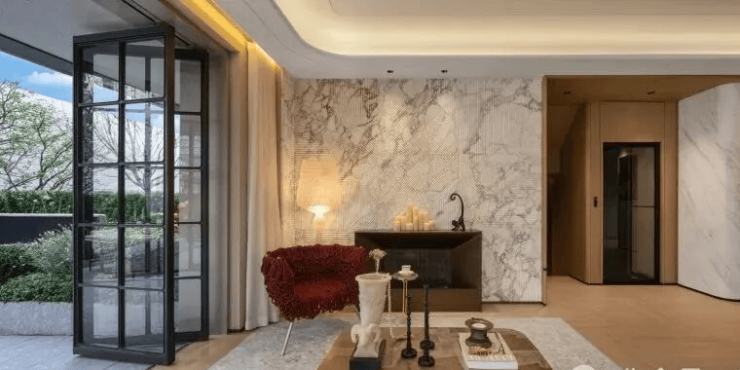 此外架空层还有很多细节,比如整体的挑高整整有5.2m,妥妥的豪宅级别配置;地面拼花都是纯手工拼接,摩登现代,打造出移步异景的归家仪式感。在600万级的项目中,真真实实属于超配!