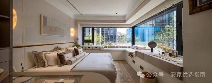 主卧拥有270度环幕飘窗,视野和采光优越,配备了高奢卫生间,空间感、尊崇感拉到顶格。