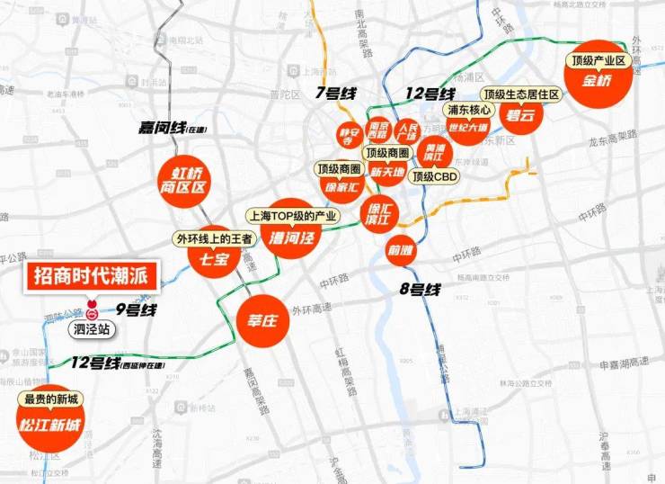 首先,这条轨交汇聚了上海东西最重要的两大产业:漕河泾&金桥 。沿线还有徐家汇、新天地等顶级CBD。