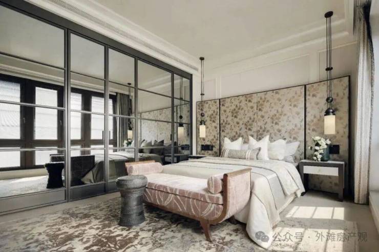 复刻和平饭店酒店式门庭,引入酒店式双线归家仪序,五进入户礼序与四重车仪之道,置身于海派隐奢的世界。高定酒店式落客区,尊奢入口,以国际顶奢酒店华尔道夫安曼式礼序营造,尽显尊贵风范。
